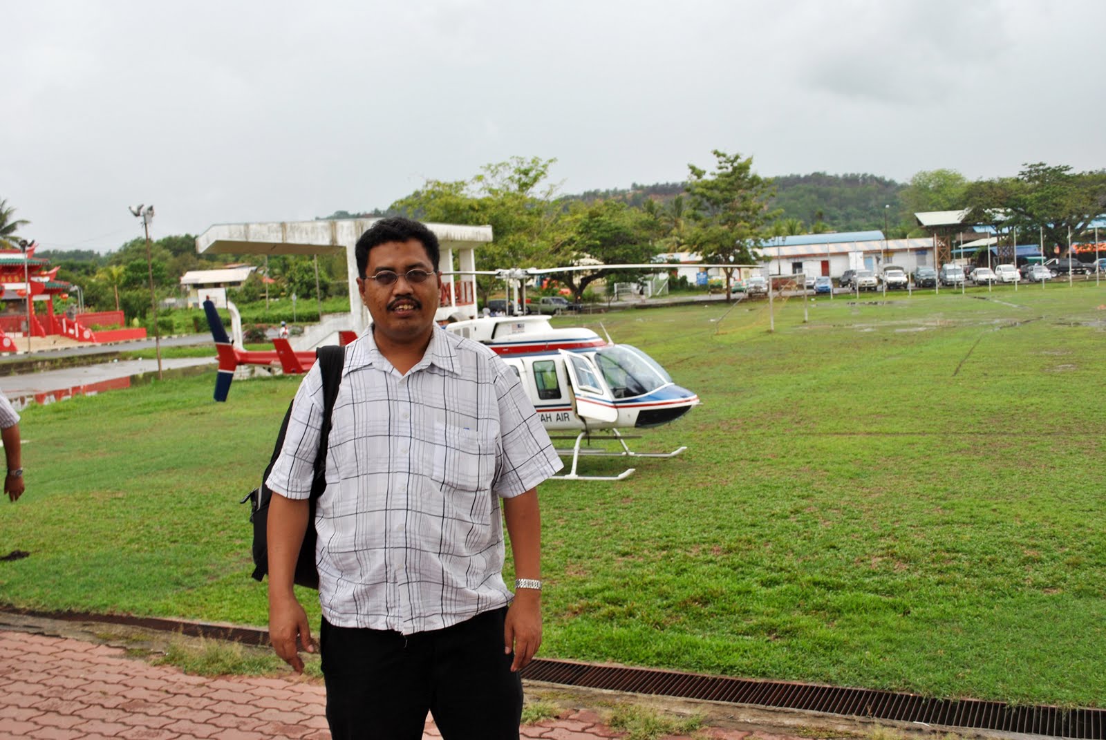 Ketika kami sampai di atas langit Rampayan, hujan gerimis sudah turun. Tidak lama kemudian heli hinggap di Padang Kota Belud untuk menurunkan Ampal kerana beliau dijangka membuat persembahan di Kota Belud malam ini.